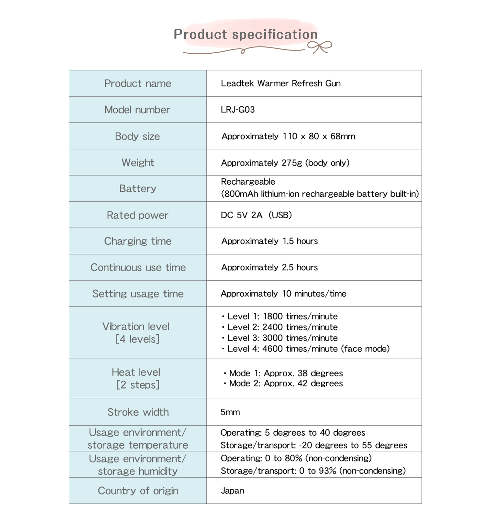 Product specification